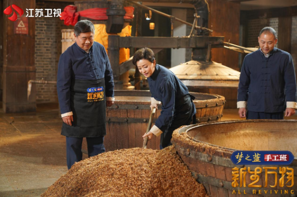 綿柔酒香飄滿城,古意新潮相輝映。2月10日,由“夢之藍(lán)·手工班”獨家冠名,江蘇衛(wèi)視與陽光媒體集團共同出品的大型非遺煥新紀(jì)實節(jié)目《新生萬物》第六站走進(jìn)江蘇宿遷探訪洋河酒釀造技藝。發(fā)起人楊瀾攜文化老友單霽翔及新銳設(shè)計師王成福、胡傳建組成“新生學(xué)徒團”,來到酒香四溢的洋河古鎮(zhèn),學(xué)習(xí)洋河酒制曲、釀酒、封藏、勾調(diào)的四大技藝。