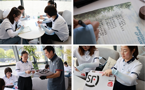 初夏的酒都公園涼風(fēng)習(xí)習(xí),酒史館前的大草坪,布置精美雅致,粉紅氣球與鮮花交相輝映,將儀式感拉滿,歡迎酒嫂的到來。“我愛洋河”“我是洋河酒嫂,我自豪”“愛上洋河,愛在洋河”“小家美滿,洋河大家越來越好”……酒嫂拍照留念記錄下最美好的時刻,并寫下對愛人、對家庭、對洋河最真摯的祝愿。